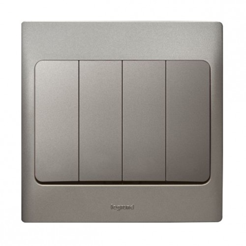 Bộ công tắc bốn 1 chiều màu xám đậm dòng Mallia của thiết bị điện Legrand